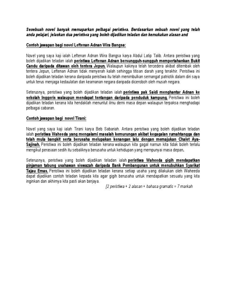 Contoh Soalan Dan Jawapan Untuk Latar Masyarakat Tirani